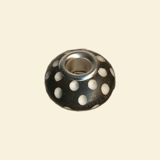 5mm hole. We stock Pandora style beads, also known as charm beads, in wood effect. The beads are 12mm in diameter with a 5mm hole.